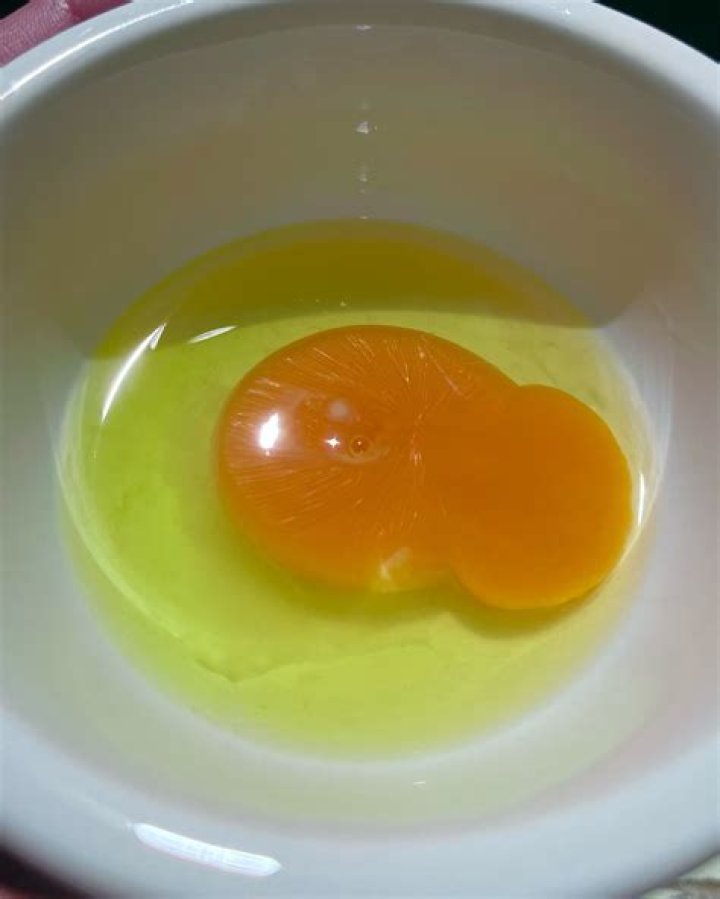 When you crack open the egg, if it's fertile, you'll notice a small white spot on the top of the yolk about 4mm in width. This is called the germinal disc. This is what tells you if the egg has been fertilised. This disc is formed with a single cell from the female and a single sperm from the male.
