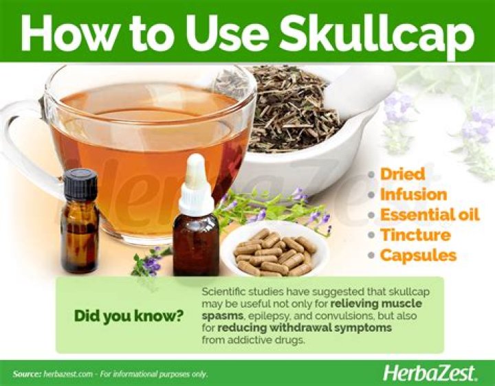 Limit doses of American skullcap to no more than the package recommendation. Typical doses (see individual product information): Dried herb: 1 to 2 g 3 times/day; Tea: 240 mL 3 times/day (pour 250 mL of boiling water over 5 to 10 mL of the dried herb and steep for 10 to 15 minutes); Tincture: 2 to 4 mL 3 times/day.