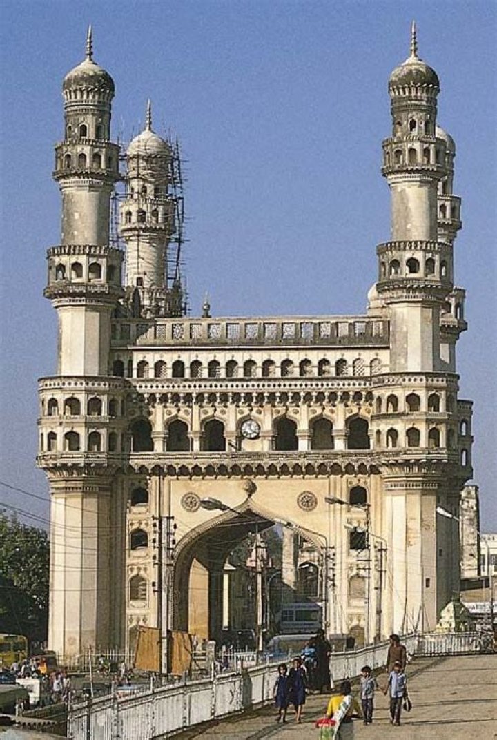 The Charminar is a monument and mosque in Hyderabad, India. The structure was built in 1591 AD. It is the most famous building of Hyderabad and also one of the most famous buildings in India. It was built by Muhammad Quli Qutb Shahi to celebrate the end of a deadly plague.